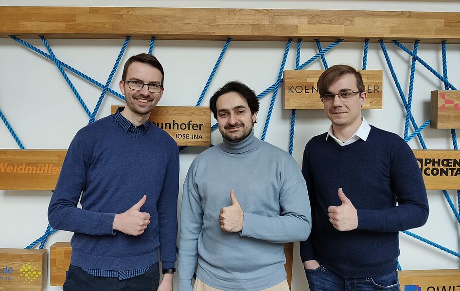 In diesem Jahr setzte sich das erfolgreiche Team aus den inIT-Mitarbeitern Daniel Antonow, aus der Arbeitsgruppe „Vernetzte Automatisierungssysteme“ (Leitung: Prof. Henning Trsek), Baris Gün Sürmeli sowie dem neuen Teammitglied Paul Wunderlich, beide aus der Arbeitsgruppe „Authentifikation“ (Leitung: Prof. Helene Dörksen), zusammen. Die inIT-Mitarbeiter konnten ihre KI-Kenntnisse und Erfahrungen in die Lösung einbringen, und das Team sicherte sich erneut den ersten Platz mit einem Preisgeld von 1000 Euro.