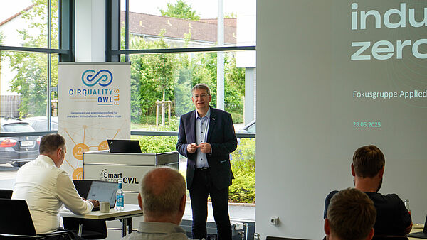 Vertreterinnen und Vertreter von Miele, GEA Westfalia, TIQ Solutions, der Gebr. Becker GmbH, der Jürgenhake GmbH sowie der Forschungseinrichtungen Fraunhofer IOSB-INA, Fraunhofer IEM und inIT nutzten die Gelegenheit zum aktiven Austausch. Ziel war es, erste Ansatzpunkte für gemeinsame KI-Projekte zu identifizieren, neue Verbindungen zu knüpfen und sich mit den Forschungspartnern zu möglichen Formen der Zusammenarbeit abzustimmen.