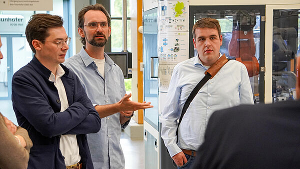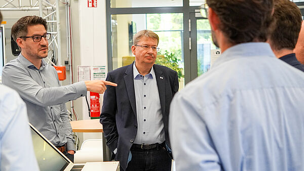 Prof. Dr. Volker Lohweg, Christoph-Alexander Holst und Dr. Sahar Deppe stellten darüber hinaus aktuelle KI-Aktivitäten des inIT und des Fraunhofer IOSB-INA vor. Sie zeigten auf, wie sich KI-Lösungen in industrielle Prozesse überführen lassen. Eine anschließende Führung durch die SmartFactoryOWL ermöglichte praxisnahe Einblicke in verschiedene KI-Anwendungen und Forschungsdemonstratoren.