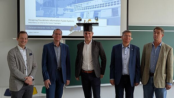Im Rahmen seiner Forschung zur Daten- und Informationsfusion entwickelte Dr.-Ing. Christoph-Alexander Holst einen neuen Ansatz für Fusionssysteme unter Zuhilfenahme von impliziten Redundanzen, die bei der Auswertung multipler Daten entstehen. Des Weiteren zeigte er Verfahren auf, die in der Lage sind, Inkonsistenzen und Unvollständigkeiten in multisensorischen Systemen zu reduzieren.