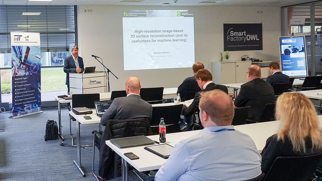 Die diesjährige Keynote wurde von Prof. Dr. habil. Christian Wöhler von der Technischen Universität Dortmund gehalten. In seiner Präsentation mit dem Titel „Hochauflösende bildbasierte 3D-Oberflächenanalyse“ gab Prof. Dr. Christian Wöhler spannende Einblicke in die neuesten Techniken der Bildverarbeitung mit Bezug auf Mond- und Marslandungen. Er erläuterte detailliert, wie diese Technologien nicht nur die Genauigkeit und Effizienz industrieller Mess- und Prüfprozesse verbessern, sondern auch neue Möglichkeiten für die Automatisierungstechnik eröffnen. Seine Ausführungen zeigten eindrucksvoll, wie 3D-Rekonstruktionsmethoden zur Lösung komplexer Aufgaben beitragen können und welche Rolle sie in der Zukunft der industriellen Bildverarbeitung spielen werden.