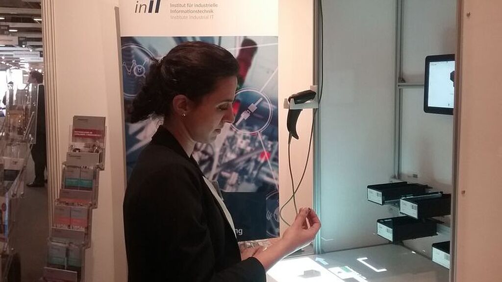 Nach einer allgemeinen Einführung zum Thema Industrie 4.0 in kleinen und mittelständischen Unternehmen, stellte Perez konkrete Best-Practice Beispiele aus der Region vor. Ein dargestelltes Beispiel war die Kooperation mit dem KMU Becatex, für das in der SmartFactoryOWL ein 3D Prototypen entwickelt und gedruckt wurde (in Kooperation mit dem Fachbereich Produktion und Wirtschaft der HS OWL, dem Fraunhofer IOSB-INA und dem inIT), mit denen das Unternehmen zukünftig ihre Notfalltaschen für die Feuerwehr ausstatten möchten. Die Infoveranstaltung fand regen Anklang und zahlreiche Interessierte informierten sich anschließend am Messestand über die Lemgoer Services und neueste Technologien im Bereich der Fertigungs- und Montageassistenz.