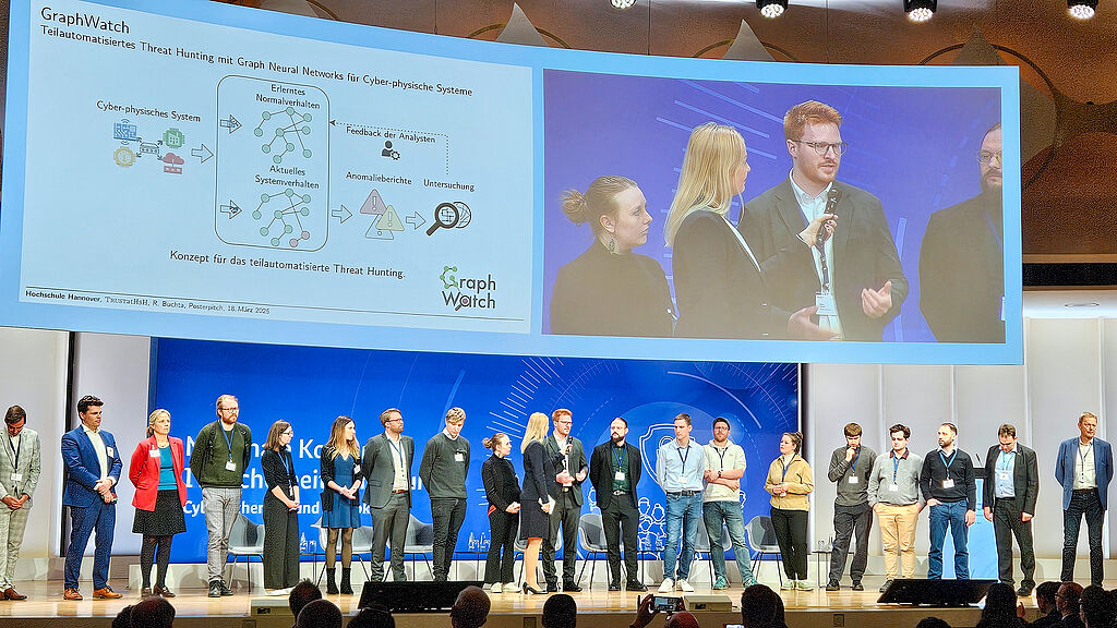 Vom 17. bis 19. März 2024 trafen sich führende IT-Sicherheitsexpertinnen und -experten im Berliner Congress Center zur Nationalen Konferenz IT-Sicherheitsforschung 2025 (ITS2025). Zahlreiche vom Bundesministerium für Bildung und Forschung (BMBF) geförderte Projekte präsentierten dort ihre Entwicklungen und Ergebnisse - darunter auch das Projekt GraphWatch des Instituts für industrielle Informationstechnik (inIT) der Technischen Hochschule Ostwestfalen-Lippe (TH OWL). Das inIT war mit der Arbeitsgruppe "Vernetzte Automatisierungssysteme“ unter Leitung von Prof. Dr. Henning Trsek, Forschungsgruppenleitung Natalia Moriz und Projektmitarbeiter Robin Foster auf der Konferenz vertreten.