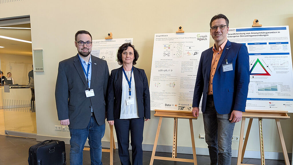 Unter dem Leitthema „Cybersicherheit und Demokratie“ kamen Expertinnen und Experten aus Wissenschaft, Wirtschaft und Politik zusammen, um aktuelle Herausforderungen der IT-Sicherheit zu diskutieren. Das Projekt GraphWatch, das in Kooperation mit der Hochschule Hannover (HsH) und rt-solutions.de durchgeführt wird, wurde durch ein Poster von Robin Buchta (HsH) im Rahmen des Poster-Pitches einem breiten Publikum vorgestellt. Nicht nur die Präsentation und das Projekt stießen bei den Teilnehmenden auf großes Interesse, auch darüber hinaus bot die Konferenz eine hervorragende Plattform für Austausch und Netzwerkbildung. Prof. Dr. Henning Trsek, Natalia Moriz und Robin Foster nutzten die drei Tage, um sich intensiv über Herausforderungen, Forschungsbereiche und Lösungsansätze auszutauschen.