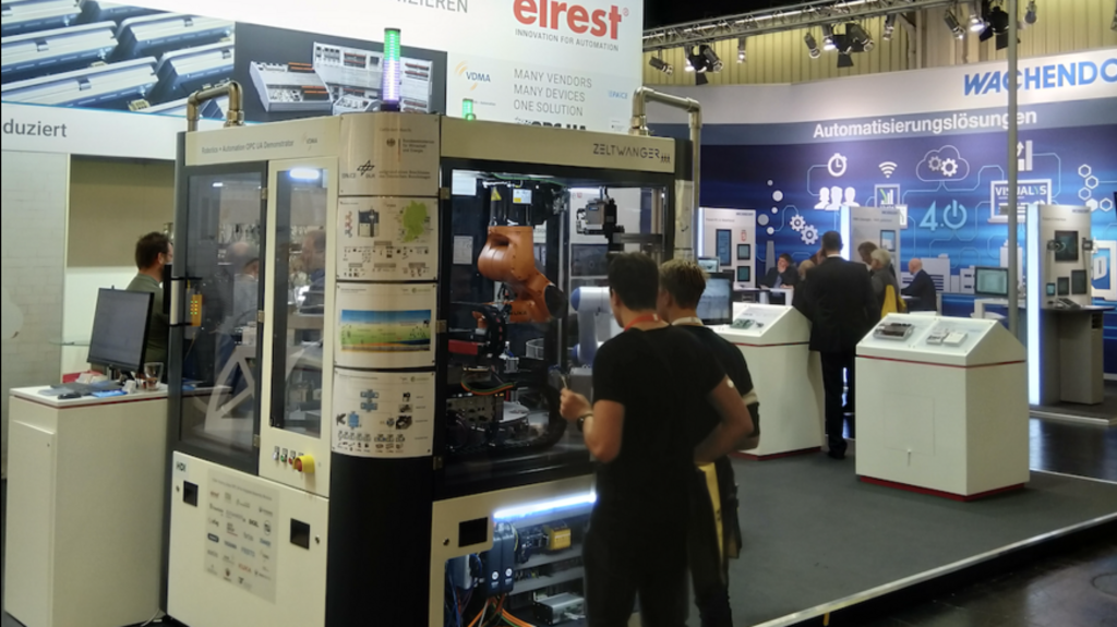 Vorgestellt wurde auf der Messe das vom Bundesministerium für Wirtschaft und Energie (BMWi) geförderte Verbundprojekt ´DEVEKOS: Durchgängiges Engineering für sichere, verteilte und kommunizierende Mehrkomponentensysteme´, in dem das inIT maßgeblich an der Entwicklung Industrie 4.0 konformer Kommunikationslösungen sowie neuartiger Engineering Methoden beteiligt ist. Im Zuge der Digitalisierung und Industrie 4.0 werden vollständig vernetzte und in Echtzeit kommunizierende Automatisierungssysteme Realität. Durch die Miniaturisierung der Elektronik können heutzutage auf engstem Bauraum Steuerung, Aktorik und Sensorik in Automatisierungskomponenten integriert werden. Die eingebettete Software macht solche Komponenten zu intelligenten, kommunizierenden Modulen. Ziel des Projektes ist es, Lösungen für eine robuste, sichere und echtzeitfähige Kommunikation für die Industrie zu finden. Außerdem soll ein durchgängiges und funktionsorientiertes Engineering für industrielle Anwendungen geschaffen werden.