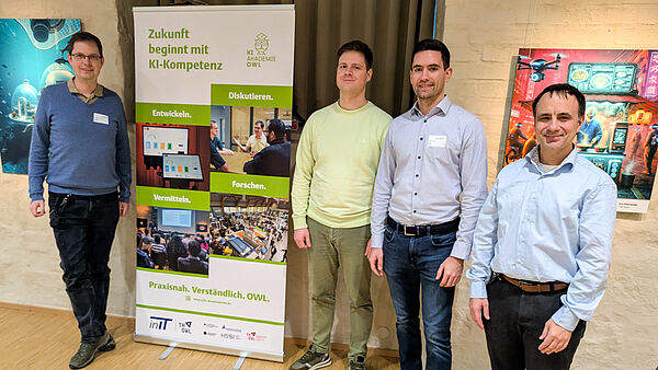 Vorher führte Prof. Dr. Markus Lange-Hegermann die Besucherinnen und Besucher durch die Ausstellung „A KInd of Art“ im Schloss Brake. Die Demonstratoren des inIT wurden direkt ausprobiert und sorgten für weitere Gespräche über aktuelle KI-Forschung und deren Anwendungsmöglichkeiten.