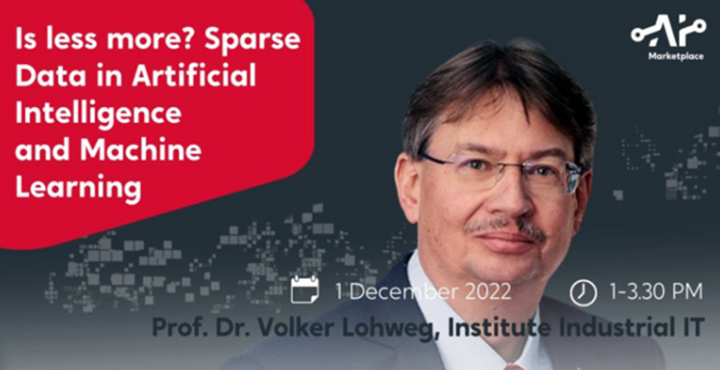 Prof. Dr. Volker Lohweg beleuchtete in seiner Keynote „Is less more? – Sparse Data in Artificial Intelligence and Machine Learning“ die Möglichkeiten und Best Practices mit dem Umgang von nur wenigen zur Verfügung stehenden Daten im industriellen Kontext.