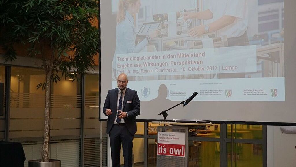 98 Unternehmen stellten auf dem Transfertag die Ergebnisse ihrer Transferprojekte sowie die Erfahrungen in der Zusammenarbeit mit den Forschungseinrichtungen vor. Dabei geht es um selbstkorrigierende Fertigung, die einfache Bedienung und die intelligente Vernetzung von Maschinen, ein effizientes Energiemanagement und ganzheitliche Produktentwicklung (Systems Engineering). An zwei Tagen berichteten Unternehmen und Forschungsinstitute des Technologie-Netzwerks „it's OWL – Intelligente Technische Systeme OstWestfalenLippe“, wie die Kooperationen in den Transferprojekten umgesetzt und wie moderne Technologien aus dem BMBF-Spitzencluster erfolgreich in den Unternehmen eingeführt wurden. Die Themen reichen dabei von Selbstoptimierung, Intelligente Vernetzung, Mensch-Maschine-Interaktion, Energieeffizienz und disziplinübergreifende Produktentwicklung.