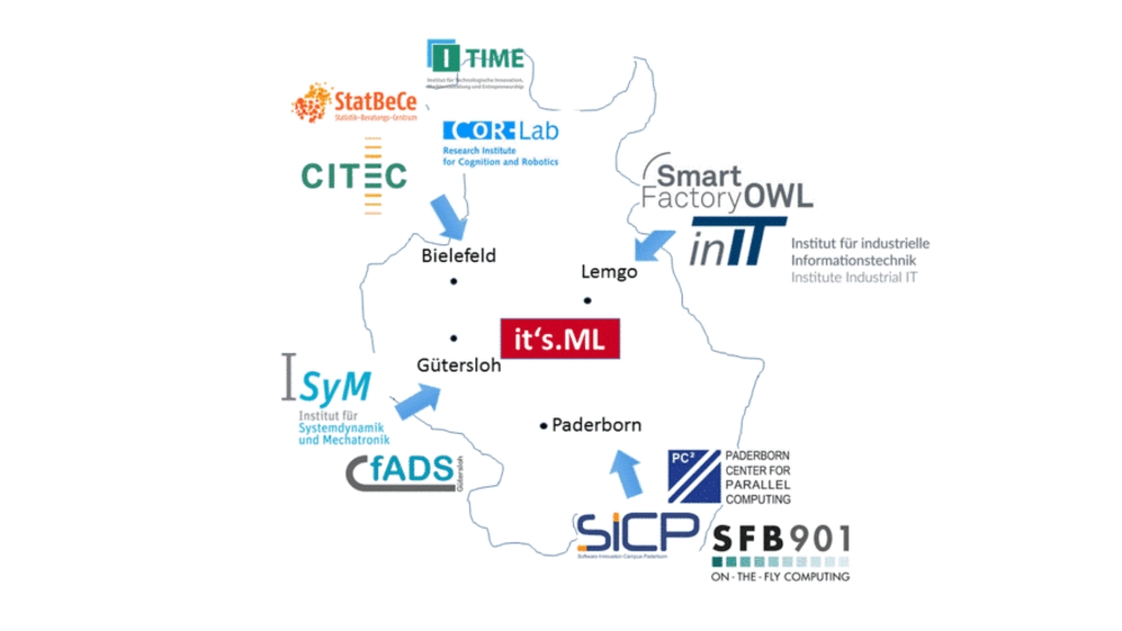 Übergeordnetes Ziel des Projektes ist die wirtschaftliche Nutzung von Daten in der Industrie, die auf den von den regionalen KMUs initiierten technischen Digitalisierungsstrategien und der ausgewiesenen Exzellenz der beteiligten Partner aufbaut. „it’s ML“ wird vom Bundesministerium für Bildung und Forschung (BMBF) gefördert und von einer Reihe von OWL-Hochschulpartnern getrieben. Die Projektleitung liegt bei Professorin Dr. Barbara Hammer (CITEC, Universität Bielefeld). Seitens des inIT sind Professor Dr. Oliver Niggemann (Organisation) und Professor Dr. Volker Lohweg beteiligt. Das darauf aufbauende und beantragte Kompetenzzentrum stellt ergänzend dazu Services und Forschungsschwerpunkte im Zuge der Digitalisierung in den Fokus und erarbeitet Lösungen, die sich über mehrere Branchen hinweg als zentrale Herausforderungen ergeben und für die maschinelles Lernen eine Methode der Wahl darstellt.