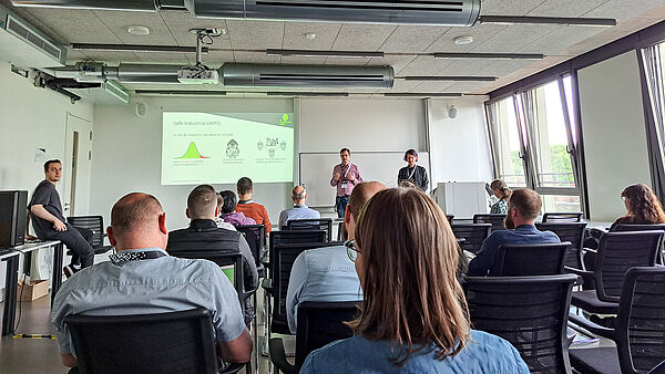 Prof. Dr. Benjamin Paaßen (Universität Bielefeld) und Prof. Dr. Markus Lange-Hegermann (inIT) stellten den praxisorientierten Ansatz der KI-Akademie OWL vor. Dabei geht es darum, KI nicht als Trendthema, sondern als gesellschaftlich und industriell relevante Technologie weiterzudenken. Am Beispiel der Themenfelder Inclusive AI und Safe Industrial AI zeigten sie, wie KI-Systeme so gestaltet werden können, dass sie auch unter realen Bedingungen zuverlässig funktionieren, etwa in datenarmen Szenarien, sicherheitskritischen Produktionsumgebungen oder bei Anwendungen mit erhöhtem Bedarf an Transparenz und Nutzungsautonomie.