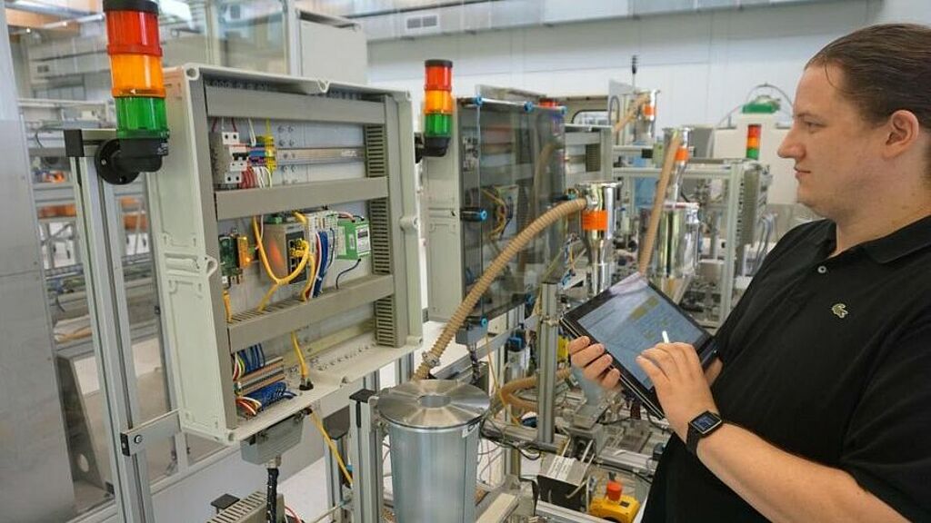 Die Forscher am inIT arbeiteten erfolgreich an der Entwicklung der Software, die die komplette Inbetriebnahme und den Umbau von großen Fabriken selbst steuern kann. Die Forschungsergebnisse wurden in einen Demonstrator in der SmartFactoryOWL, gemeinsame Forschungs- und Demonstrationsfabrik des Fraunhofer IOSB-INA und der Hochschule OWL, implementiert. Diese Multi-Vendor-Anlage ist modular aufgebaut: Jedes Modul hat seine eigene dezentrale Steuerung und besteht aus Automatisierungskomponenten im heterogenen Umfeld verschiedener Hersteller. Für die Steuerung der Module kommt beispielsweise ein Raspberry PI mit CODESYS Laufzeitumgebung als Kleinsteuerung zum Einsatz. Das gesamte System ist durchgängig vernetzt auf Basis von Standards wie Ethernet, WLAN oder OPC-UA.