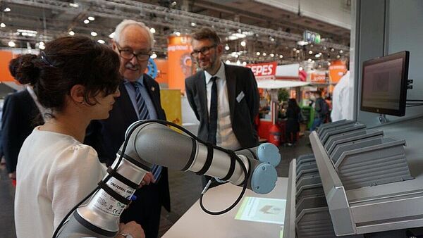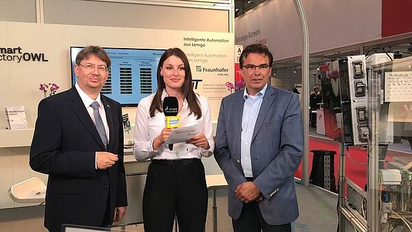 Prof. Jürgen Jasperneite, Institutsleiter des Fraunhofer Lemgo, ergänzt: „Wir haben auch in diesem Jahr das Schaufenster Hannover genutzt und zeigen auf der Messe einen kleinen Ausschnitt unserer Lemgoer Forschungskompetenzen im Bereich der intelligenten Automation. Von Jung bis Alt über Fachpublikum – alle waren bisher sehr interessiert. Wir haben einen regen Andrang auf unserem Gemeinschaftsstand, führen tolle Gespräche und freuen uns über den fachlichen Austausch.“
