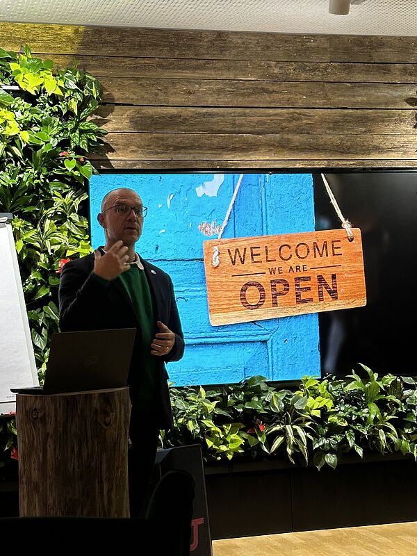 Der Vortrag fand im Rahmen des Formats “Talks on Future World Empowerment“ des Fachbereichs Elektrotechnik und Technische Informatik in der speziell dafür eingerichteten Speakers Corner im Centrum Industrial IT auf dem Innovation Campus Lemgo statt. „Unsere internationalen Studierenden im Masterstudiengang Information Technology sollen ein ganzheitliches Verständnis von Wissenschaft, Wirtschaft und Gesellschaft entwickeln und mehr soziale Verantwortung übernehmen können. Das Ziel ist, dass die Studierenden als künftige Ingenieure und Informatiker aktiv an Lösungen für die großen Fragen unserer Welt und Menschheit mitarbeiten“ erläutert Initiator Jürgen Jasperneite, Professor an der TH-OWL und Leiter des Fraunhofer-Instituts in Lemgo das Ziel dieser Veranstaltungsreihe.