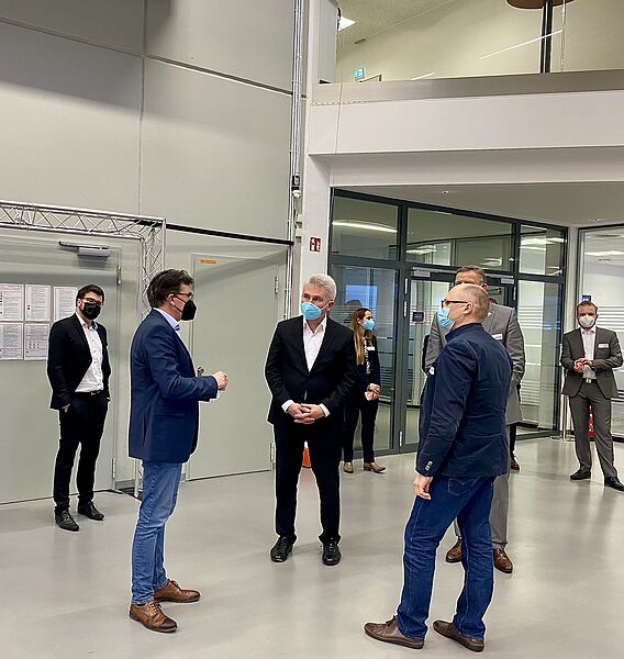 Last week, Prof. Dr. Andreas Pinkwart, Minister for Economic Affairs, Innovation, Digitalization and Energy of the State of North Rhine-Westphalia, came to see this for himself. Together with Matthias Goeken, a member of the state parliament from the Höxter constituency, and representatives of the 5G4Industry project and the Competence Center 5G.NRW, they discussed 5G as an implementation module in the overall digitalization and Industry 4.0 concept. Minister Pinkwart also sees great potential for industry: "In order for us in North Rhine-Westphalia to further expand our key position in the area of 5G, we must focus above all on the application fields of industry. The potential is great, and at the same time the requirements for data rates and latency are becoming increasingly important in the industrial context. With the 5G4Industry project, we are promoting a strong consortium of science and industry as part of the 5G.NRW competition that focuses on industrial requirements as well as the needs of small and medium-sized companies and provides important impulses for the OWL region and beyond." The project is being funded by the North Rhine-Westphalian Ministry of Economic Affairs, Innovation, Digitalization and Energy as part of the 5G.NRW competition. In total, the state government is funding 13 outstanding 5G projects with up to 26 million euros as part of the first round of the competition.