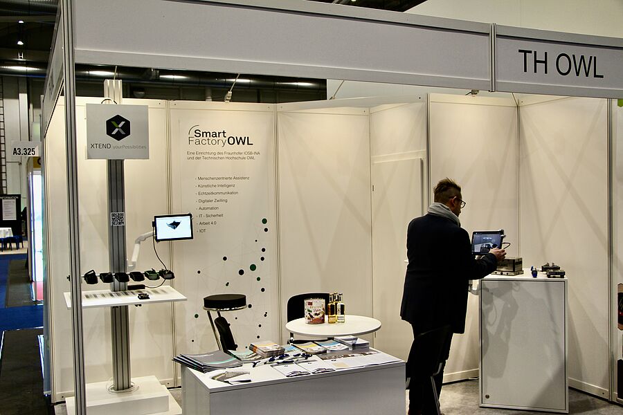 The Institute for Industrial Information Technology (inIT) and Fraunhofer IOSB-INA are also jointly managing a booth at the fair under the SmartFactoryOWL flag. The two research assistants Alexander Kuhn (inIT) and Sascha Martinetz (Fraunhofer IOSB-INA) present two demonstrators that show new technologies of assistance systems to touch. They will have with them a "pick by light" system for the assembly area and a form of mobile assistance thanks to an augmented reality application. "We are looking forward to interesting discussions and a lively exchange around the topics of innovative design of industrial production processes and Work 4.0 at our booth A3/200," says Kuhn. The trade fair offers small and medium-sized enterprises (SMEs) in particular the opportunity to keep up with technological developments and remain competitive.