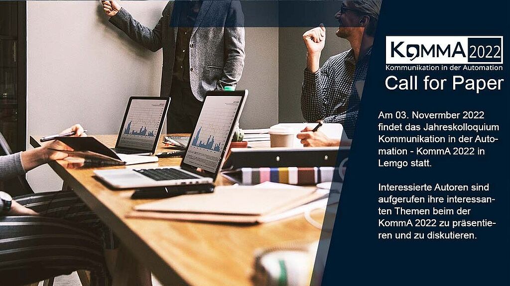 The annual colloquium "Communication in Automation (KommA)" has established itself as a forum in the German-speaking world. A group of experts from science and industry regularly discusses technical and scientific issues relating to industrial communication. It is organized by the two research institutes Institute for Industrial Information Technology (inIT) of the OWL University of Applied Sciences and Arts and Institute for Automation and Communication e.V. Magdeburg (ifak). The next annual colloquium will take place on November 3, 2022 at the Innovation Campus Lemgo. Papers can still be submitted until March 31, 2022.