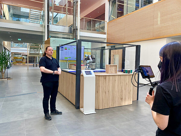 In a live streaming, the first part of the day went through various stations in the SmartFactoryOWL. Here, Nissrin Perez from CIIT partner Fraunhofer IOSB-INA presented a sustainable production of reusable cups made from corn flour with the CUNA real production. The digital twin behind this was illustrated by her colleague Magnus Redeker. At the next station, Fraunhofer expert Sascha Heymann showed the new possibilities for sales. Similar to a smartphone, apps for Industry 4.0 will be purchased on digital marketplaces in the future. The vendor-neutral and platform-independent marketplace offers deals for hardware, software and services.