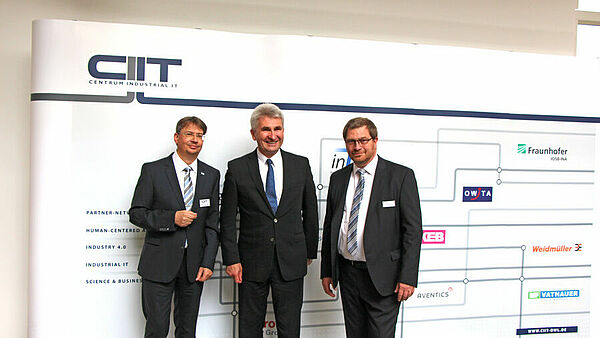 Professor Volker Lohweg, Director of the Institute Industrial IT (inIT) of OWL University of Applied Sciences and Board CIIT e.V. explained the characteristics of CIIT and emphasized its “fundamental importance for the industry region Ostwestfalen-Lippe”. The Industry 4.0 competence center CIIT is firmly located and Lemgo is well-known in the field of competence “Production of the future”. “Under one roof research institutes and companies are working together for Germany’s competitiveness”, explains Lohweg and underlines that cooperation works at CIIT. For years a research focus is set on the question how Industry 4.0 will change human work, also Industry 4.0 is put into practice together with strong partners.
