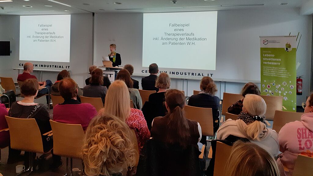 As part of the third interprofessional case conference, Jennifer Leyendecker, a freelance clinical linguist, presented a case from her practice. Her presentation showed very clearly how quickly a patient's condition can deteriorate if an incorrect second medical opinion leads to a change in medication. The case study made it clear how important well-coordinated medication is in the everyday lives of Parkinson's patients.