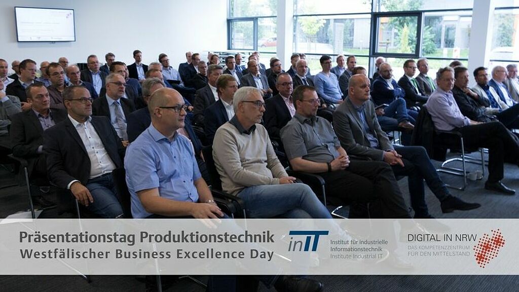 (Lemgo, 06.09.2017) Within the course of the Westphalian Business Excellence Day the Working Group Production Technique under the management of Walter Müller visited SmartFactoryOWL on 06.09.2017 with about 70 participants from industry, research institutes and science. After a guided tour through SmartFactoryOWL, Prof. Volker Lohweg, Director inIT, held a speech about Digitalization in production. Especially the application of Cyber-Physical Systems was discussed: “Once again this meeting emphasized the particular importance of the SmartFactoryOWL”, resumed Prof. Lohweg.