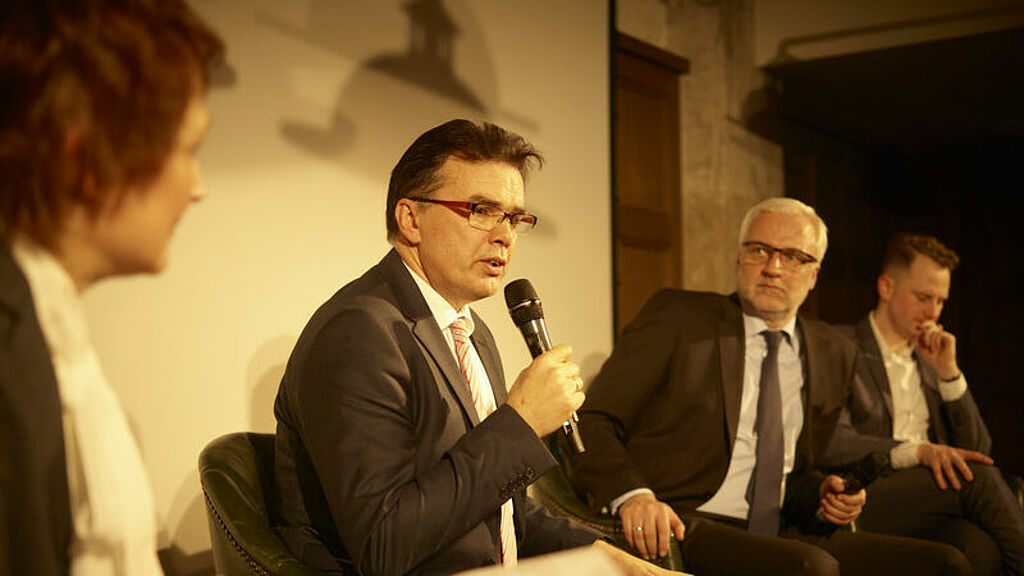 (Berlin, February 2017) In the age of digitization and automation, robots and systems based on algorithms take up more and more people's work. NRW's Minister of Economic Affairs, Garrelt Duin, technical philosopher Mads Pankow and Prof. Dr. Jürgen Jasperneite from the Research Institute for Industrial Information Technology (inIT) of the OWL University of Applied Sciences and the Fraunhofer Application Center for Industrial Automation (IOSB-INA) in Lemgo discussed the change of the working world by artificial intelligence and robots, and what developments are still to come.